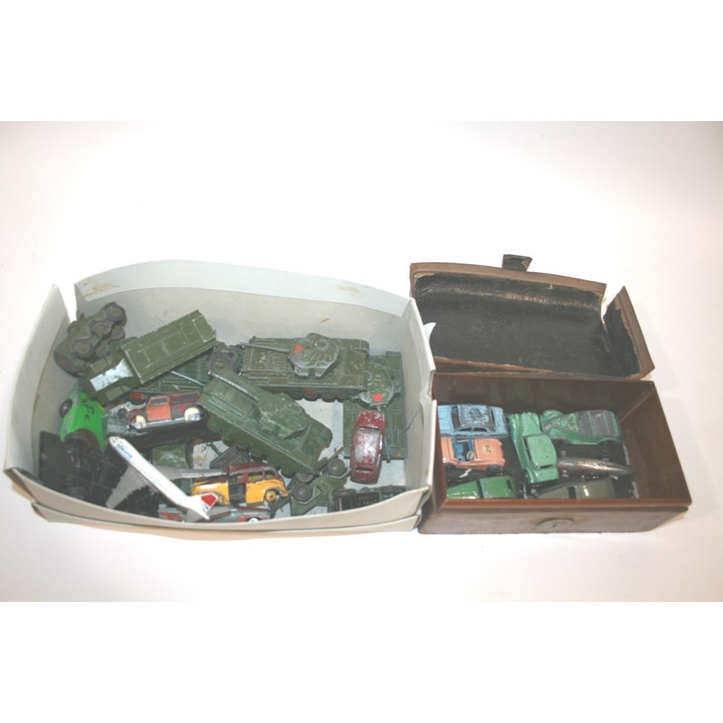 including Dinky Toys (Armstrong Siddeley, Ford Zephyr, Fiat 600 etc) and various Military examples (Scout Car 673, 1 Ton Truck 641 etc). All in played condition.