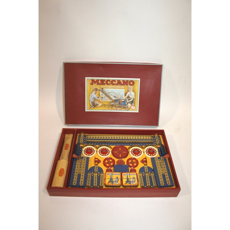 FRENCH MECCANO NO 7 - UNUSED a boxed and seemingly unused set No 7, with 2 layers of parts and original packaging.