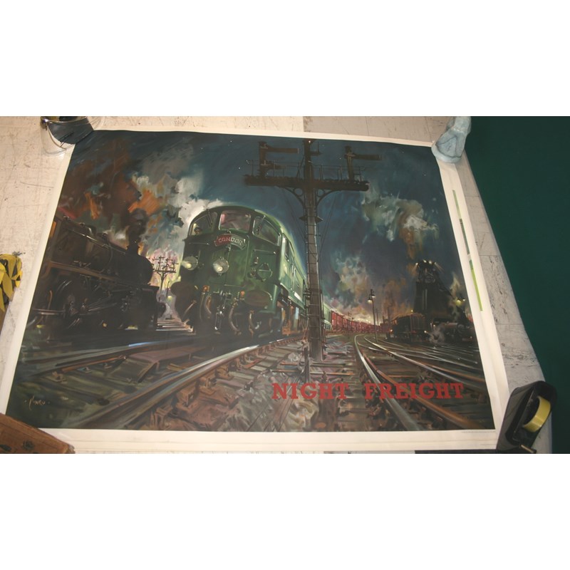 RAILWAY POSTER - CUNEO a Railway poster for the London Midland region, Night Freight. Designed by Cuneo and published by Waterlow & Sons. 127cms by 101cms