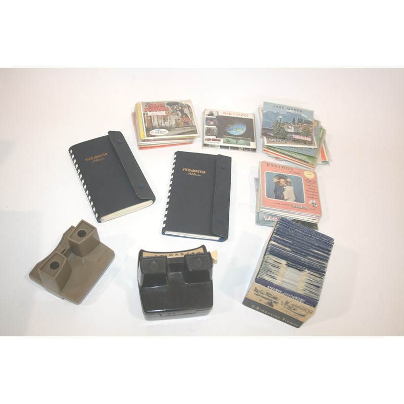 including two viewers and a large qty of discs. The discs in two albums, some in card sleeves, and some in packets including Man in Space, Mary Poppins, Eskimos, Vartican, Lake Garda, and many more.