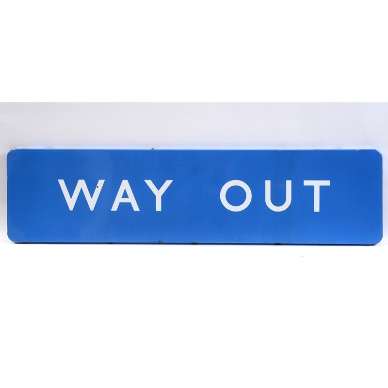 RAILWAY ENAMEL SIGN - SCOTLAND a Scottish enamel Railway sign, Way Out, with white lettering on a blue background. 122cms across