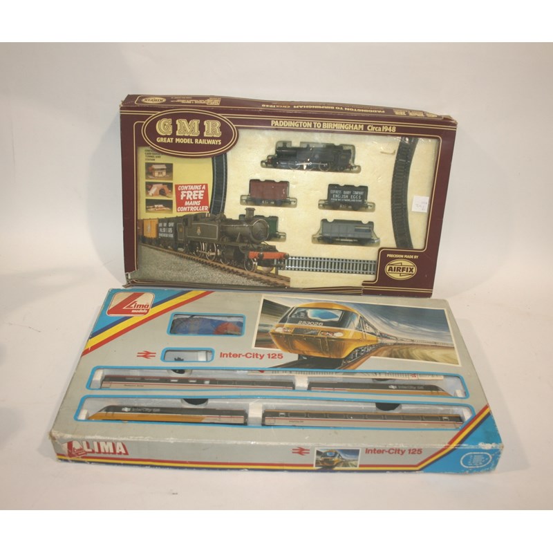 TWO BOXED TRAIN SETS a GMR Paddington to Birmingham train set, No 54067-0. Also with a Lima Inter-City 125 boxed train set. (2)
