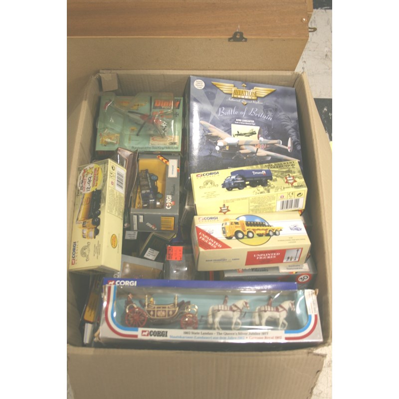 including Corgi (Brewery Collection and various other models), Corgi Queens Jubilee 1977, Days Gone, Dinky (736 Sea King), Vanguards, and various others. Also with two small cabinets for displaying toys.