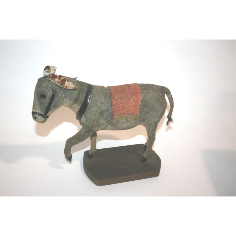 SOFT TOY DONKEY a soft toy Donkey mounted on a wooden plinth. 20cms high