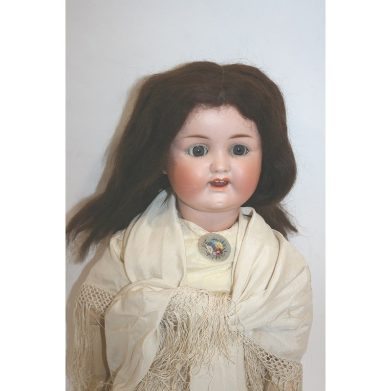 GERMAN BISQUE HEAD DOLL a large doll with weighted blue eyes and open mouth and tongue. Impressed marks, Germany, 446.B. 25ins (64cms) high
