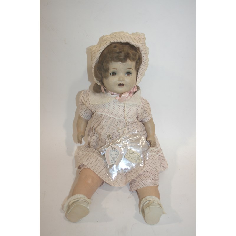 'CHUCKLES' AMERICAN DOLL a composition head doll with weighted eyes and voice box, with the original label and tag. 17ins (43cms) high