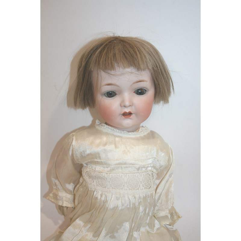 HEUBACH BISQUE HEAD DOLL with weighted blue eyes, open mouth and bent limb body. Impressed marks, Heubach, Germany, 11. 21ins (53cms) high