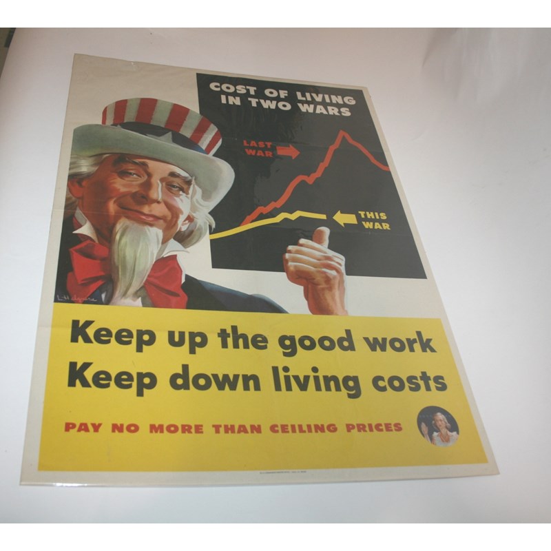 AMERICAN POSTER - WORLD WAR II the poster titled Cost of Living in Two Wars, produced by US Government Printing Office. 71cms by 51cms