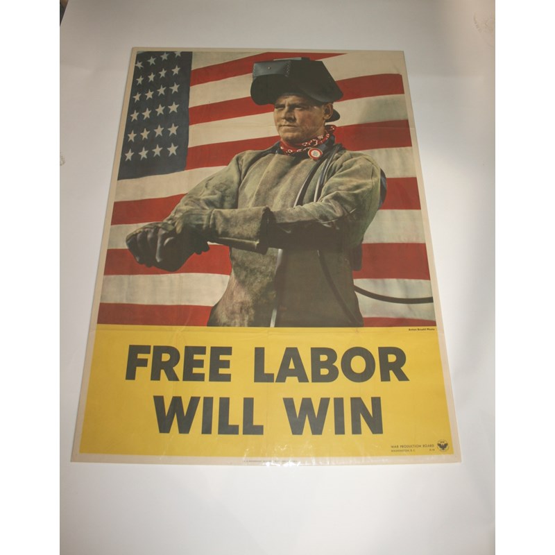 AMERICAN POSTER - WORLD WAR II the poster titled Free Labor Will Win, and produced by the US Government Printing Office. 102cms by 72cms