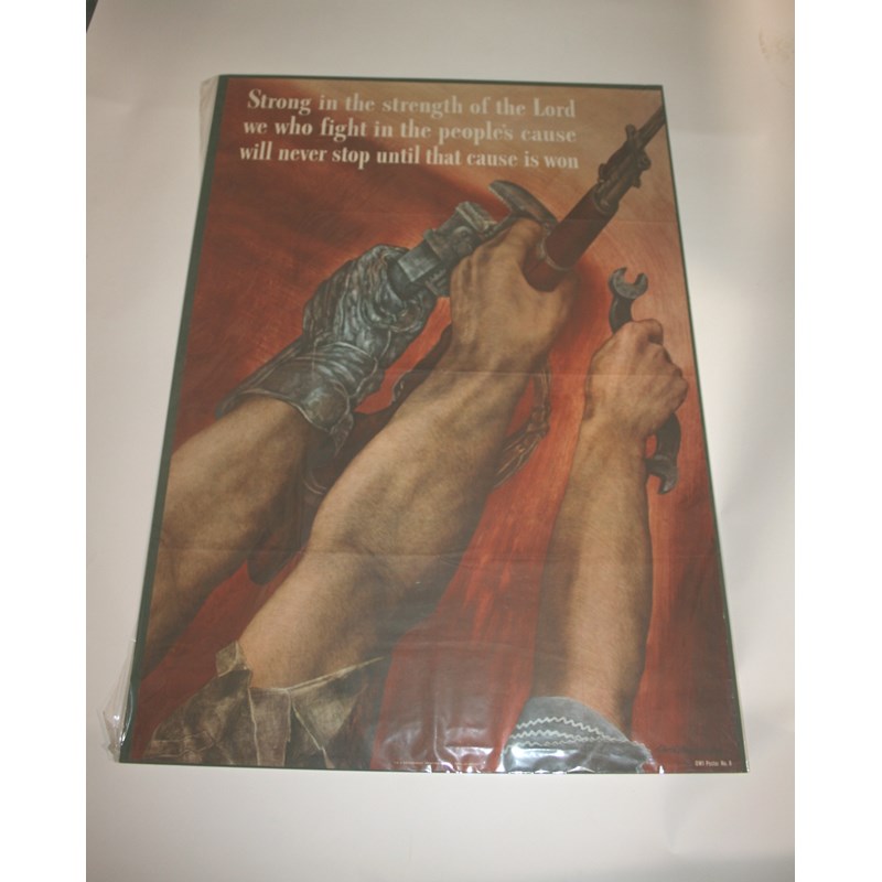 the poster tilted Strong in the strength of the Lord, OWI No 8 and designed by David Stone. Produced by the US Government Printing Office, 103cms by 71cms