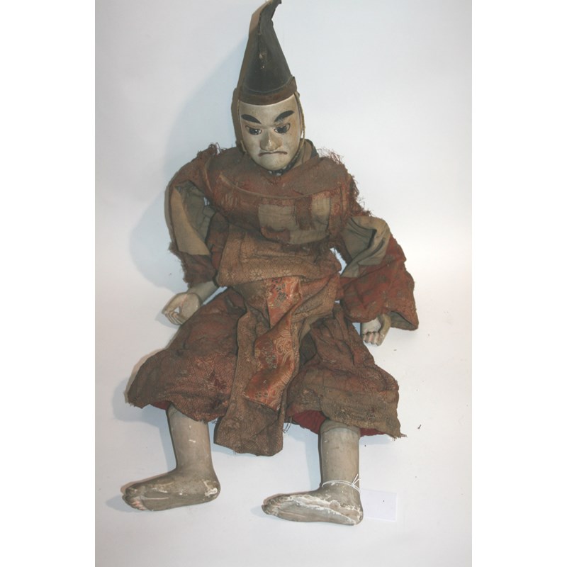 JAPANESE DOLL/THEATRE PUPPET a large wooden painted doll/theatre puppet, with original clothing and hat. 85cms high overall