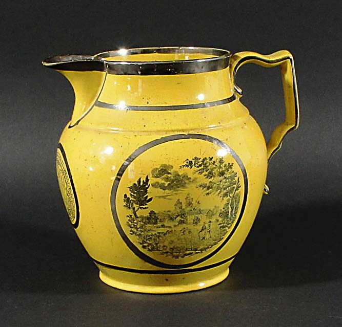 YELLOW GROUND SILVER LUSTRE PEARLWARE JUG,