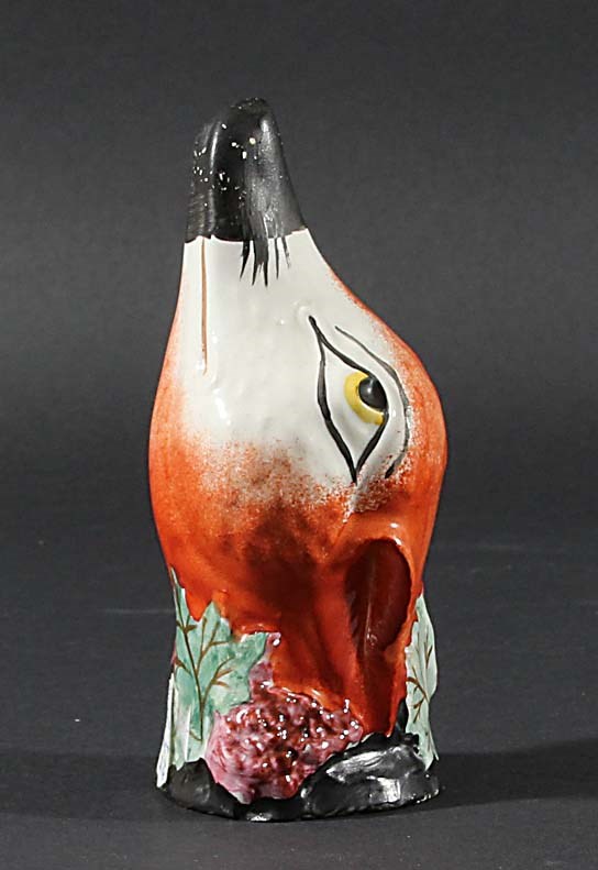 FOX MASK STIRRUP CUP, with fruiting vines to the rim, height 13cm