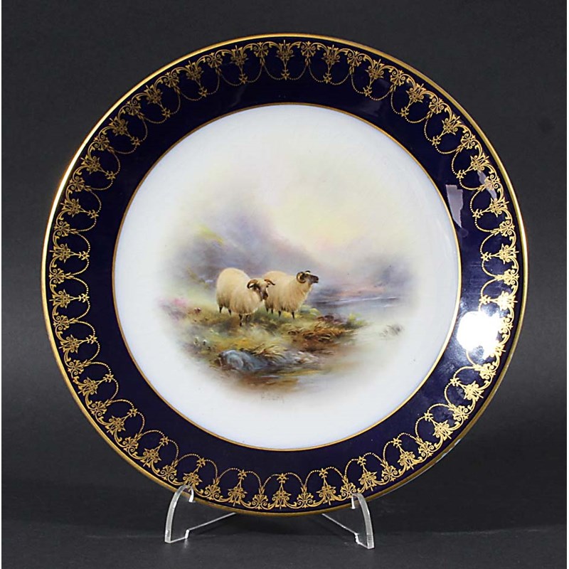 ROYAL WORCESTER CABINET PLATE, signed H Davis, date cypher for 1922, painted with two sheep in a landscape, puce printed marks, diameter 24cm