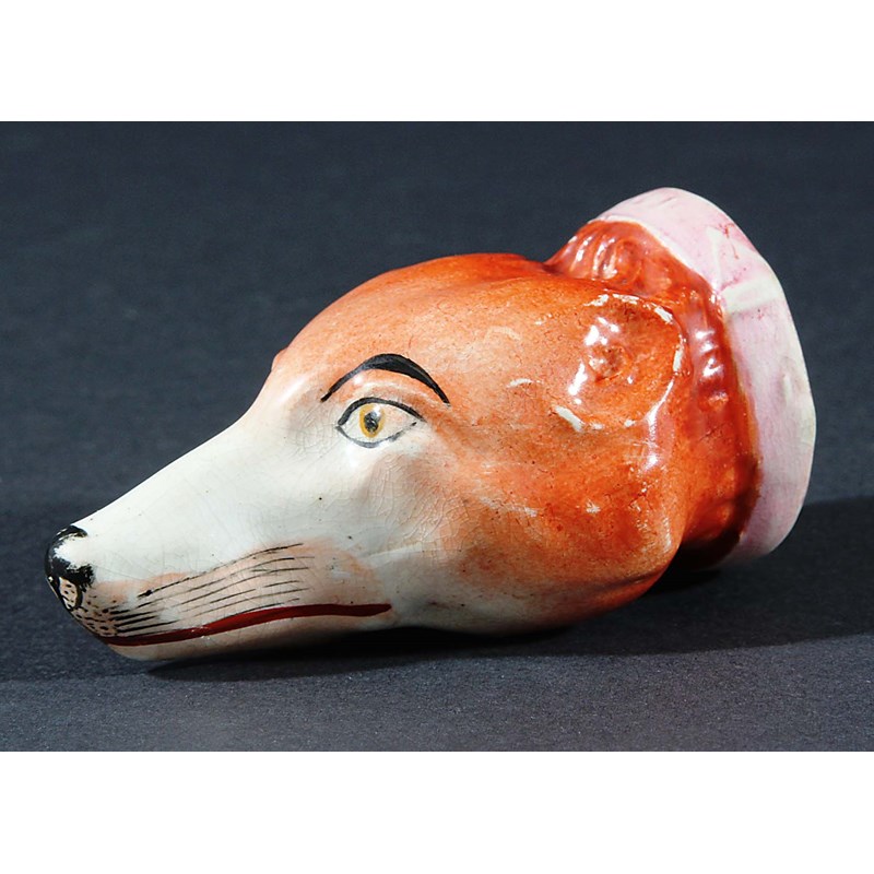 STAFFORDSHIRE PEARLWARE FOXHEAD STIRRUP CUP, mid 19th century, length 10cm