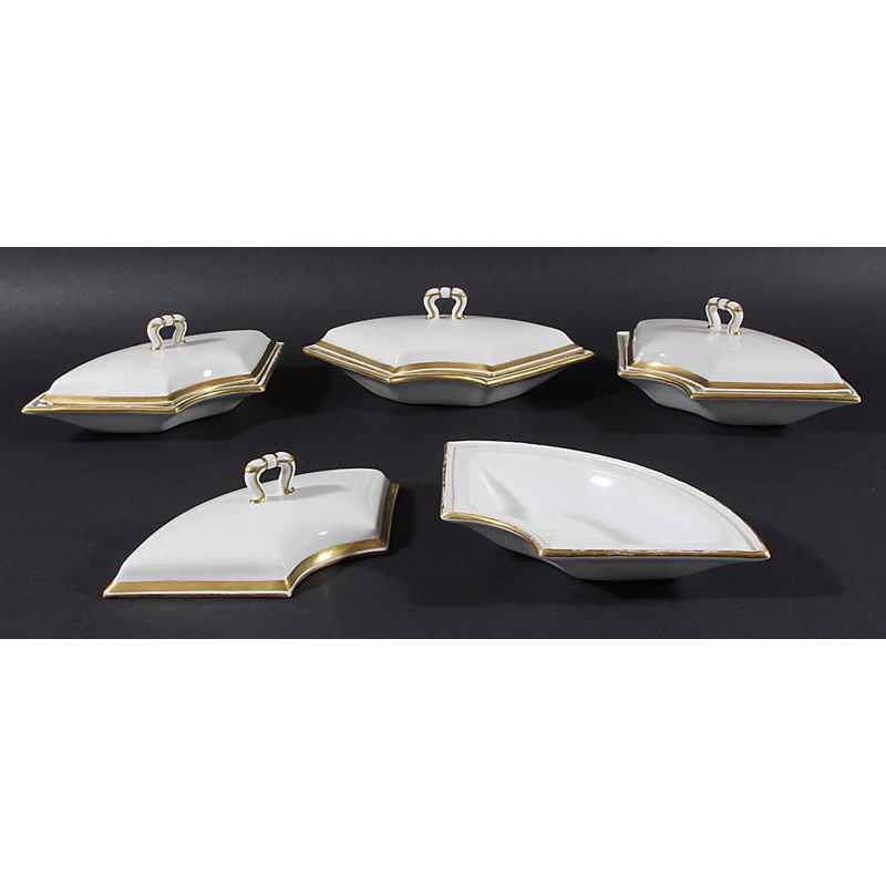 date code for 1835, each of quadrant form and with gilt line decoration to the rims, impressed bee hive and date marks, width 23cm (8)