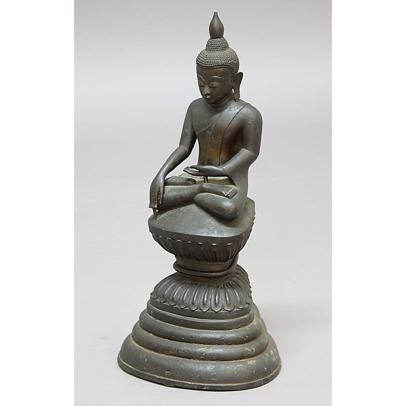 THAI BRONZE BUDDHA, seated in meditation on a double lotus and stepped base, height 46cm Provenance: Franklin Mackenzie, Nova Scotia and thence by descent