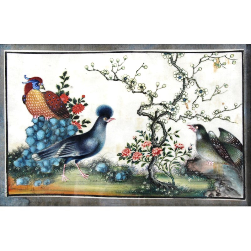 19TH CENTURY CHINESE SCHOOL, Exotic Birds and Ducks amongst flowering foliage, watercolour on pith paper, 18cm x 29cm (4)