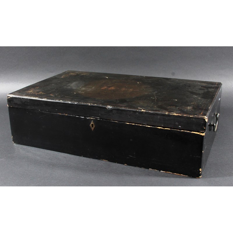 CHINESE BLACK LACQUERED AND GILT DECORATED GAMES BOX,