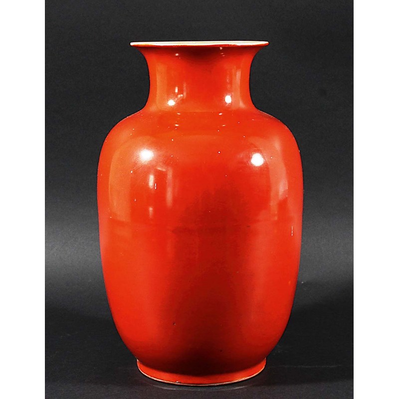 CHINESE BALUSTER VASE, in a monochrome orange glaze, probably late Qianlong, drilled for electricity, height excluding mounts 29cm