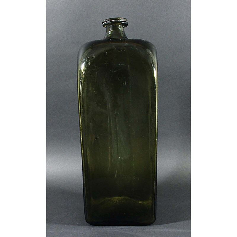 OLIVE GREEN GLASS FLAGON, early 19th century, of tapering square section with string rim, height 43cm
