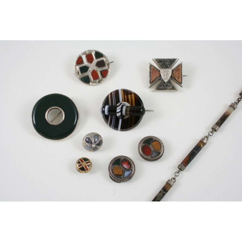 A QUANTITY OF ASSORTED SCOTTISH AGATE JEWELLERY