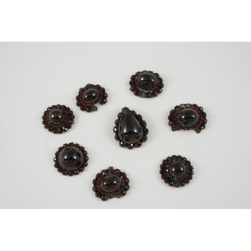 EIGHT PIECES OF ASSORTED GARNET JEWELLERY all set in gilt metal.