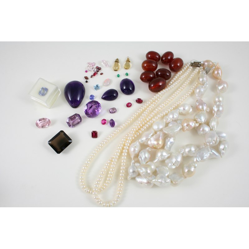 A LARGE QUANTITY OF CULTURED PEARLS AND LOOSE STONES ETC.