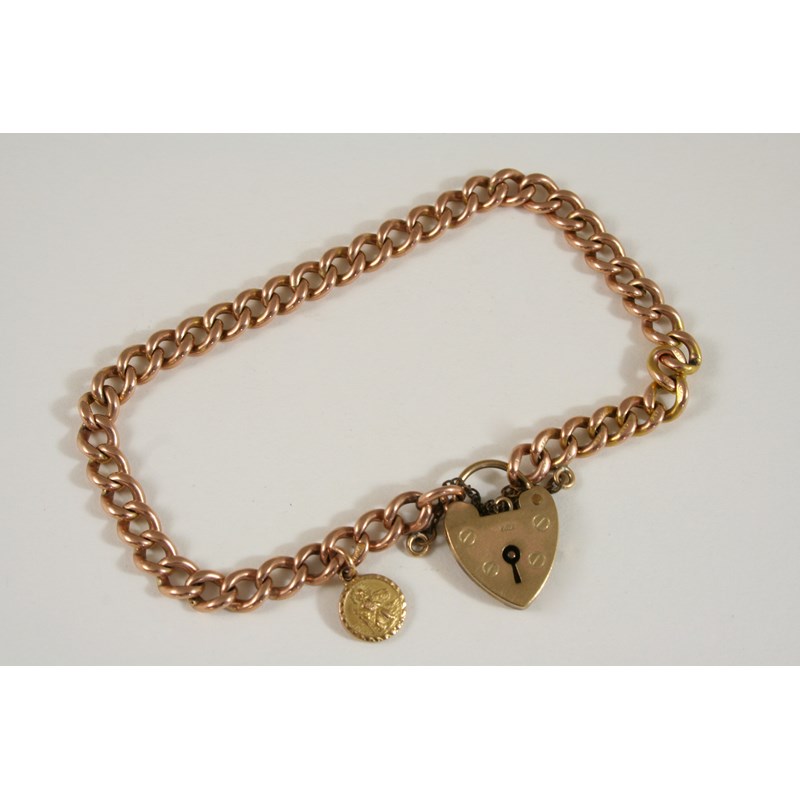 A 9CT. GOLD CURB LINK BRACELET with padlock clasp, 19cm. long, 16 grams.