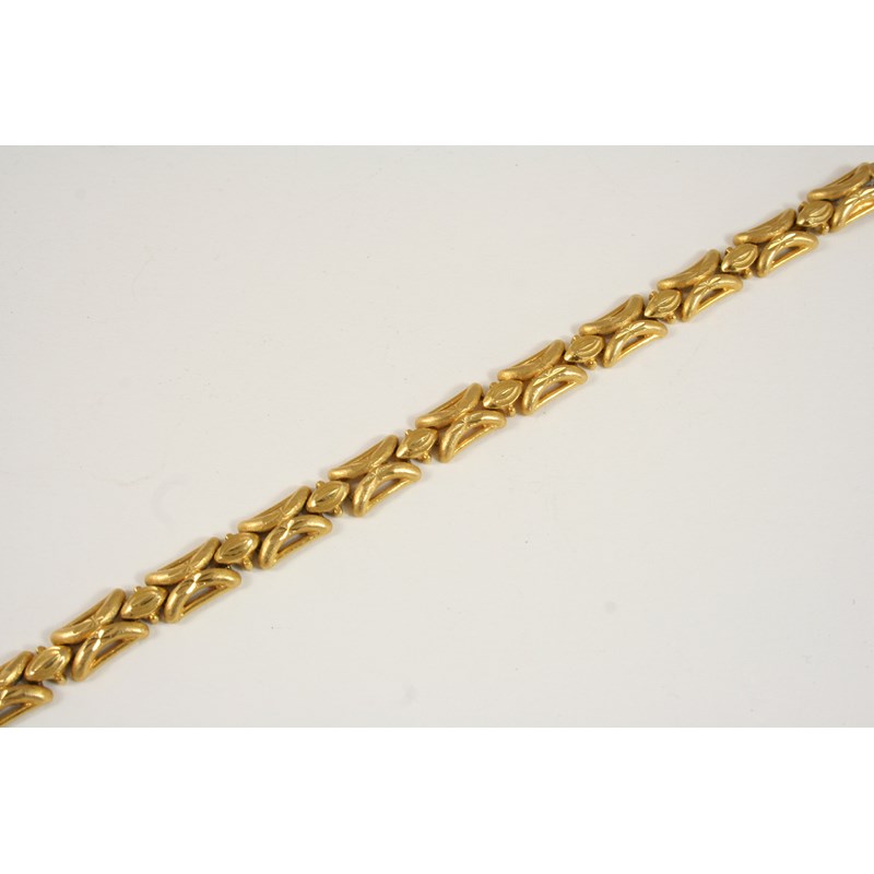 AN 18CT. GOLD FANCY LINK BRACELET 18cm. long, 23.9 grams.