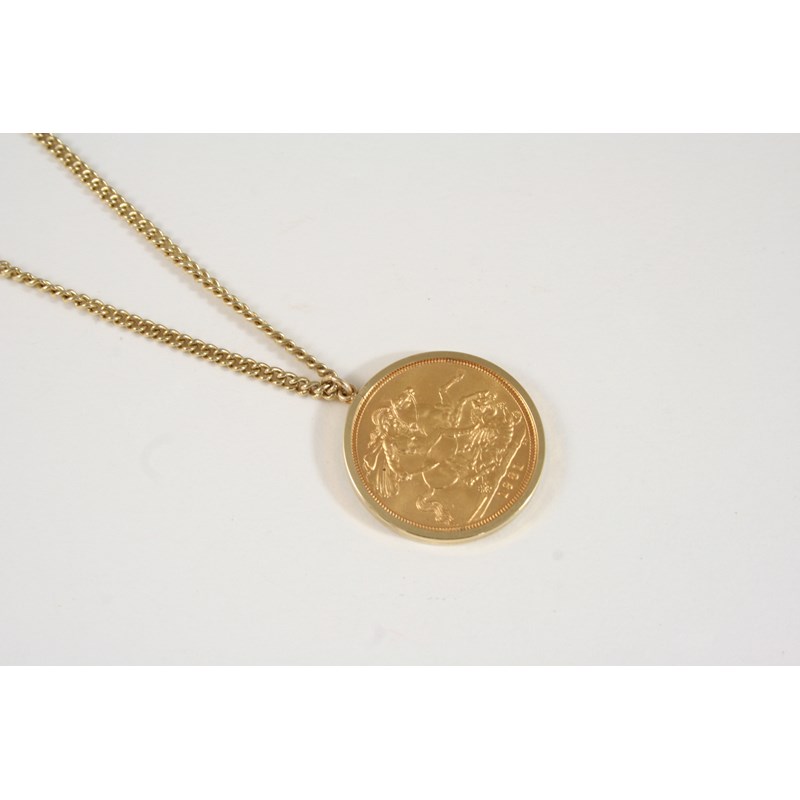 A GOLD SOVEREIGN 1981, mounted in a 9ct. gold pendant mount and on a 9ct. gold neckchain, total weight 15.8 grams.