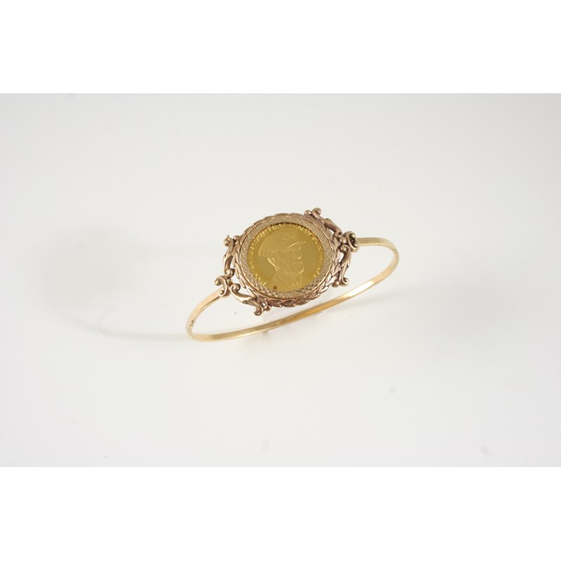 A GOLD COMMEMORATIVE COIN FOR EARL MOUNTBATTEN OF BURMA 1900-1979 in a bracelet mount.