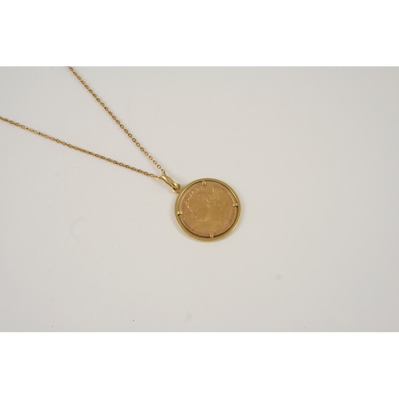 A GOLD HELVETIAN 2O FRANC PIECE 1947, from the Bern mint, Switzerland, in a gold pendant mount, 9.4 grams.