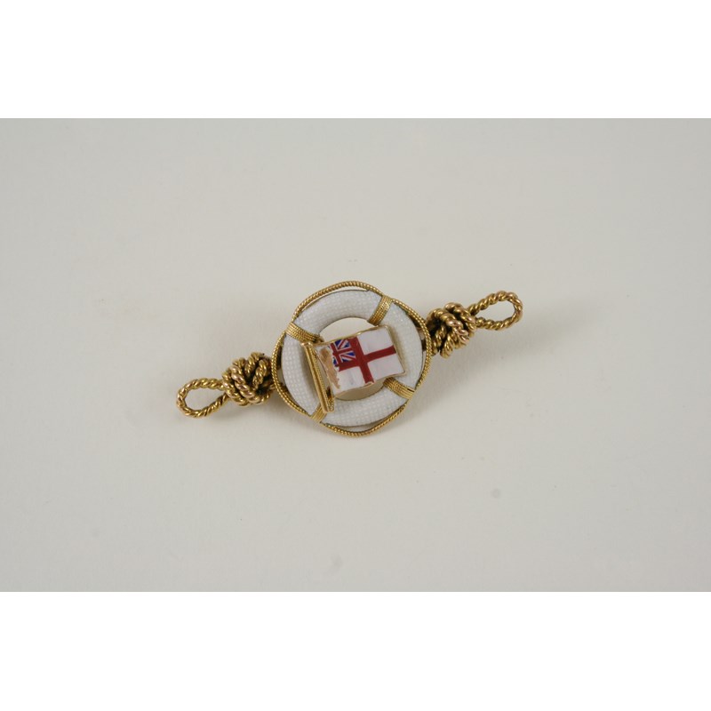 AN ENAMEL AND GOLD NAUTICAL BROOCH depicting an England St. George courtesy flag, 5cm. long.