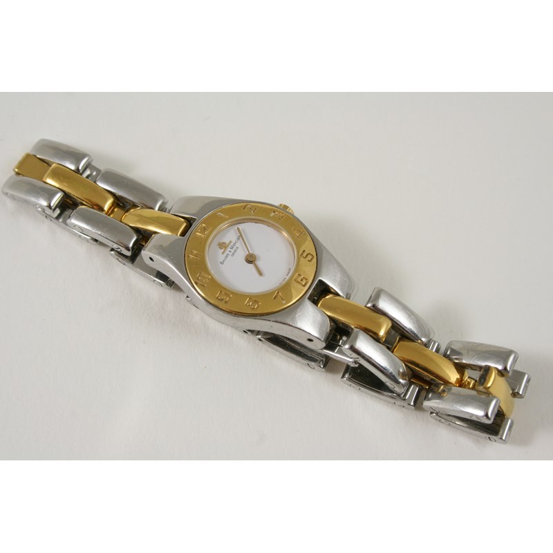 A LADY'S STAINLESS STEEL AND GOLD WRISTWATCH BY BAUME & MERCIER
