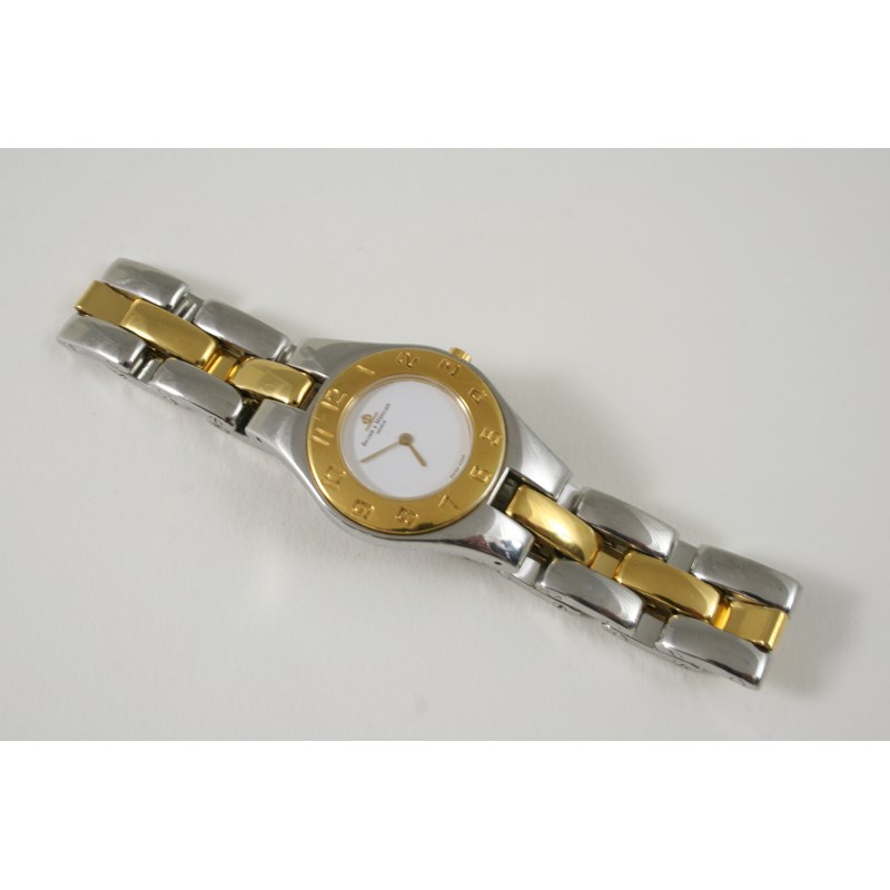 A GENTLEMAN'S STAINLESS STEEL AND GOLD WRISTWATCH BY BAUME & MERCIER