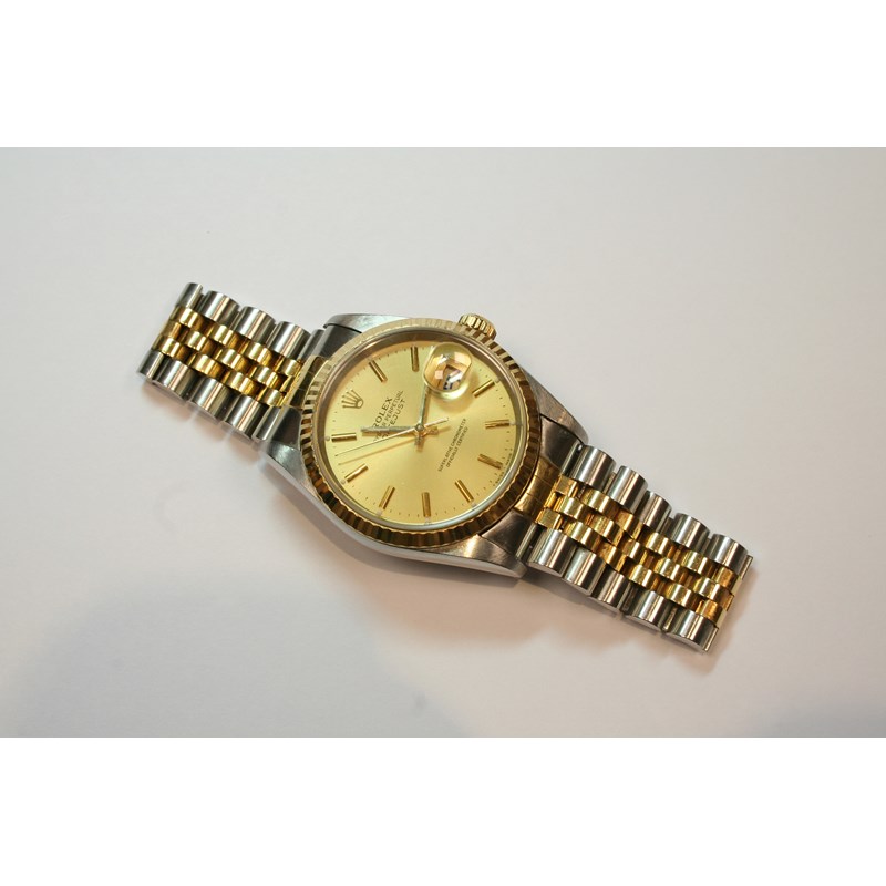 A GENTLEMAN'S STAINLESS STEEL AND GOLD OYSTER PERPETUAL DATEJUST WRISTWATCH BY ROLEX