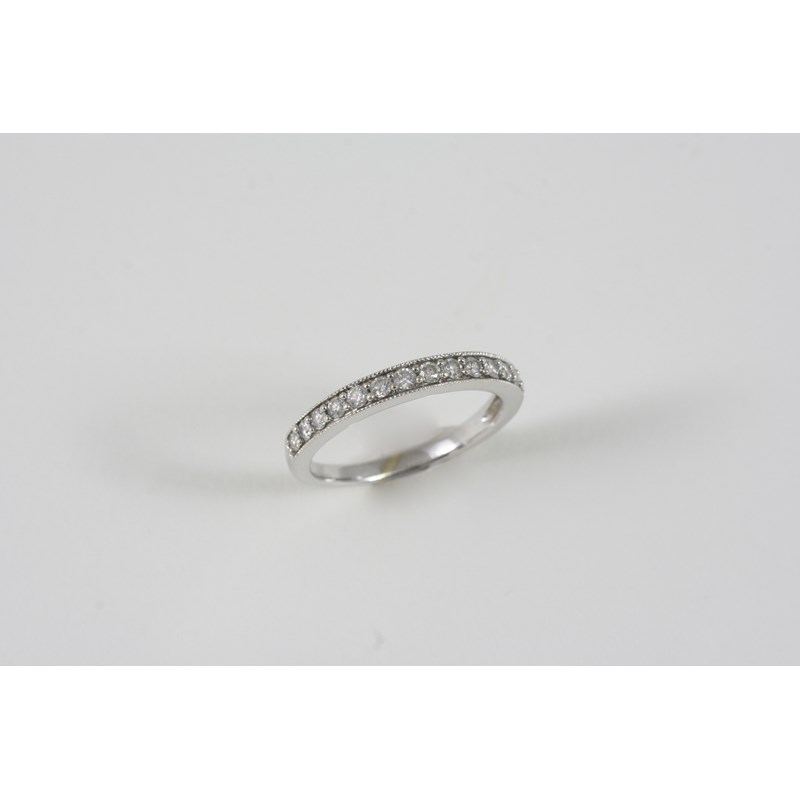A DIAMOND HALF HOOP RING set with uniform circular-cut diamonds in white gold. Size N.
