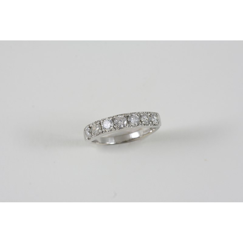 A DIAMOND HALF HOOP RING the seven circular-cut diamonds are set in 18ct. white gold. Size P 1/2.