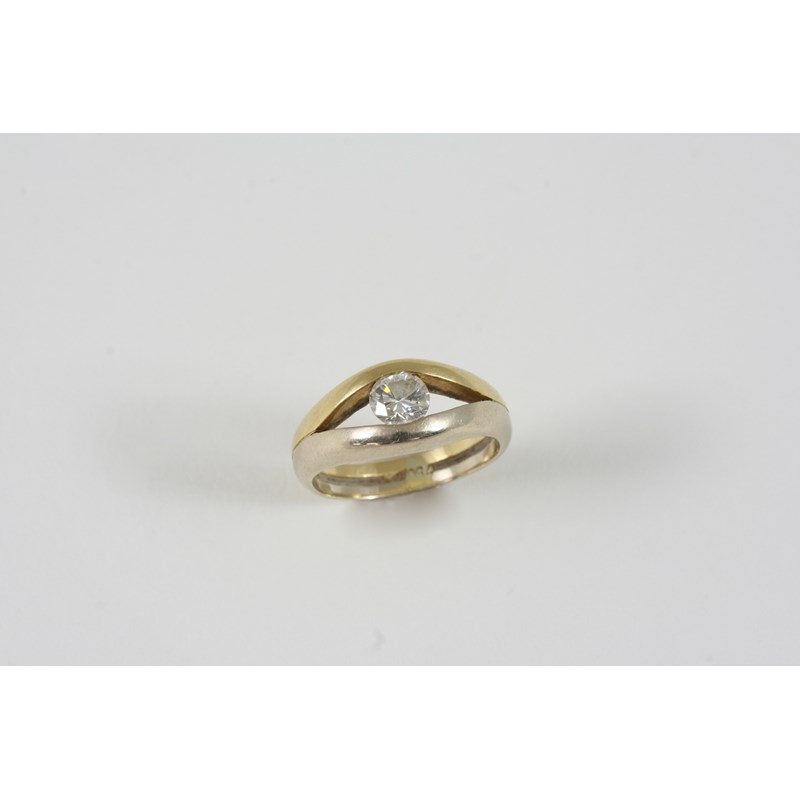 A DIAMOND SOLITAIRE RING the circular brilliant-cut diamond is set within an 18ct. gold band. Size K.