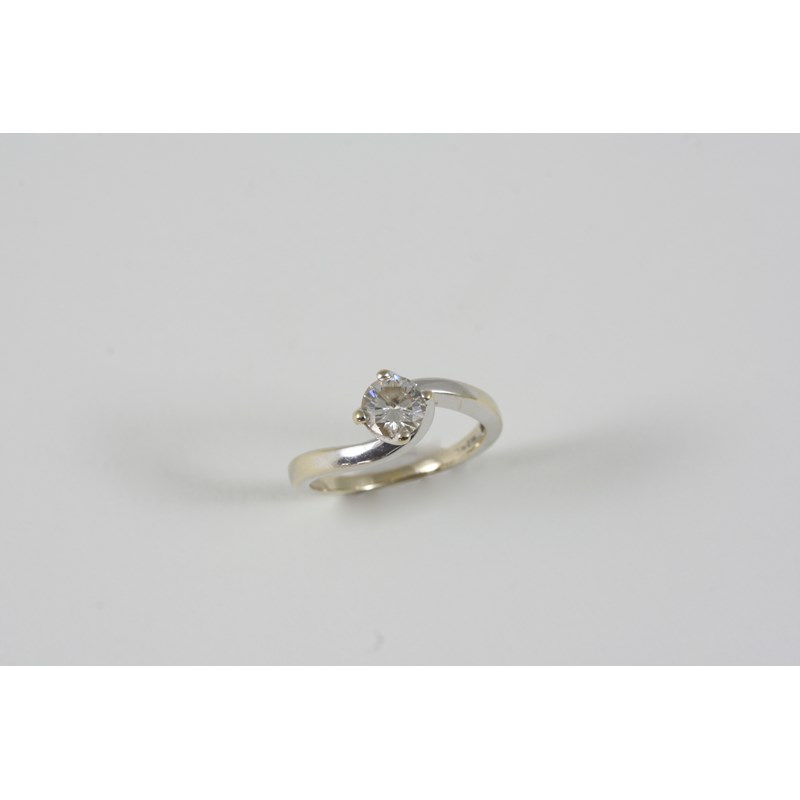 A DIAMOND SOLITAIRE RING set with a round brilliant-cut diamond weighing approximately 0.50 carats, in 18ct. white gold. Size I.