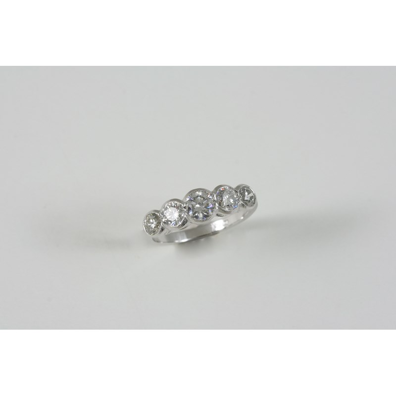 A DIAMOND FIVE STONE RING the five graduated circular-cut diamonds weigh approximately 1.55 carats and are set in platinum collet settings. Size .
