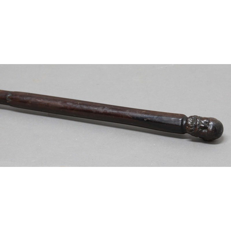 ROSEWOOD WALKING STICK, later 19th century, carved with the head of a bearded gentleman, length 78cm