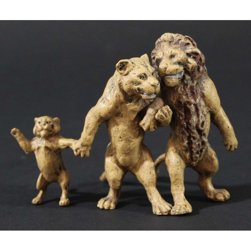 AUSTRIAN COLD PAINTED BRONZE LION FAMILY, modelled standing on their hind legs, impressed marks, length 8.5cm