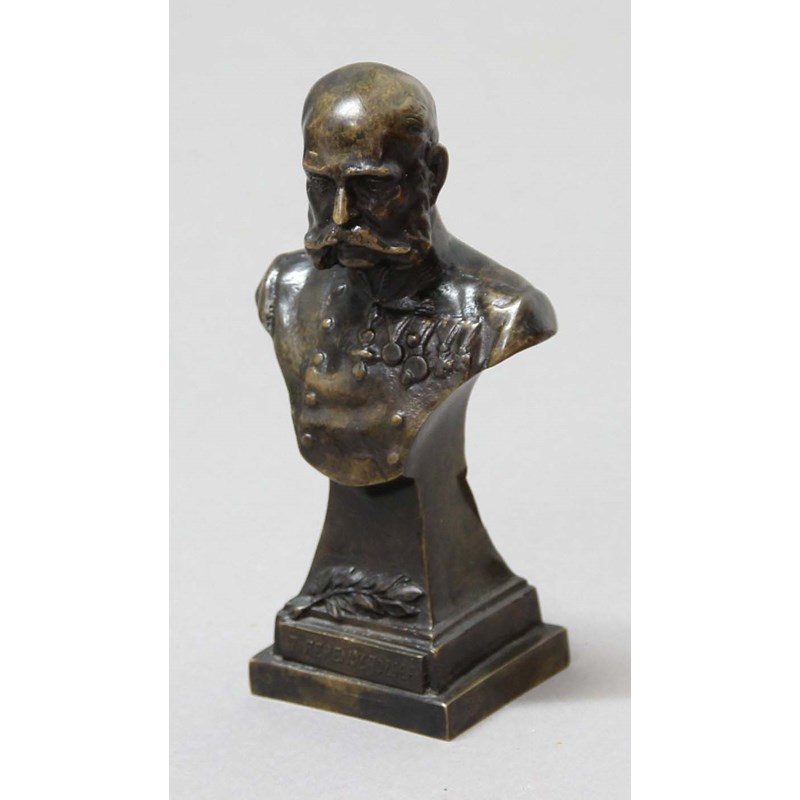 BRONZE BUST, titled 'I. Ferenoz Jozsef', on a spreading base, height 15cm