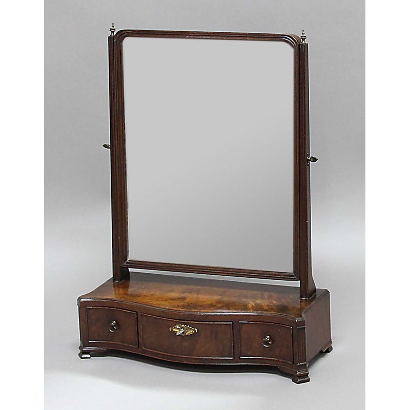 GEORGE III MAHOGANY SERPENTINE TOILET MIRROR, the shaped rectangular plate on a base with three fitted drawers, height 66cm, width 49cm