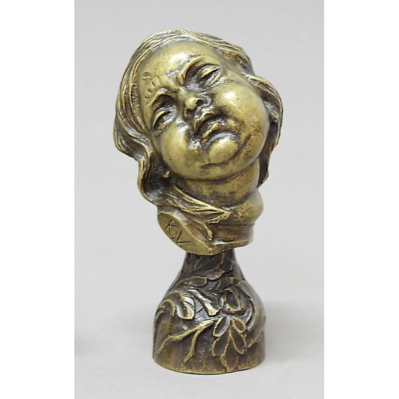 BRONZE BUST OF A YOUNG GIRL, initialled 'K.V' to one side, height 17cm