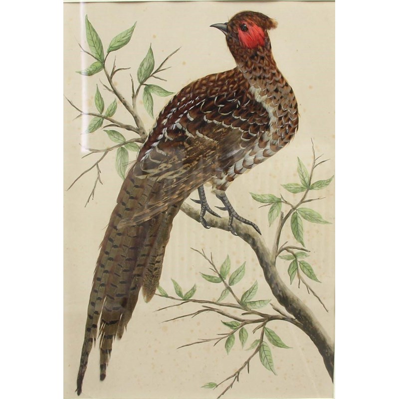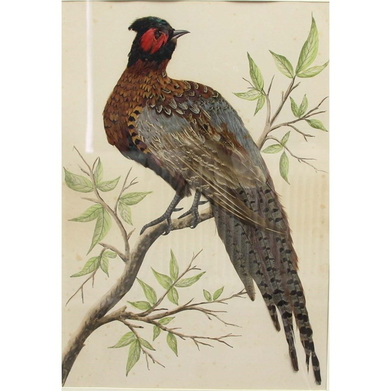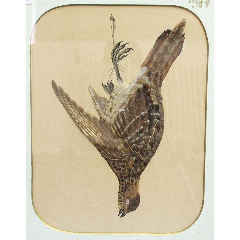 late 19th or 20th century, comprising a pair of pheasants in trees, hanging duck and grouse and two others in branches, sizes 48cmx x 33cm, 423cm x 30cm and 26cm x 16cm (6)