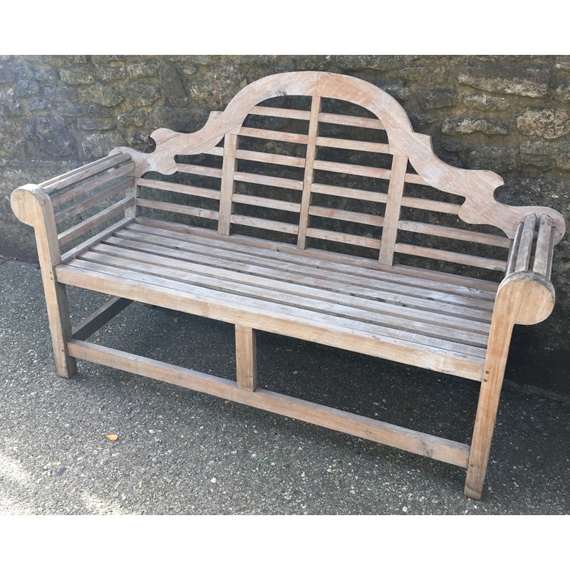 TEAK LUTYENS STYLE GARDEN SEAT, height 100cm x length 168cm x depth 59cm