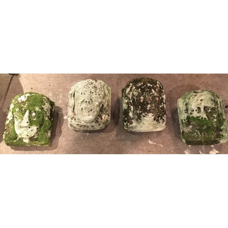 SET OF FOUR EARLY STONE CORBELS, carved as heads, possibly Medieval, approx. 30cm x 30cm x 30cm